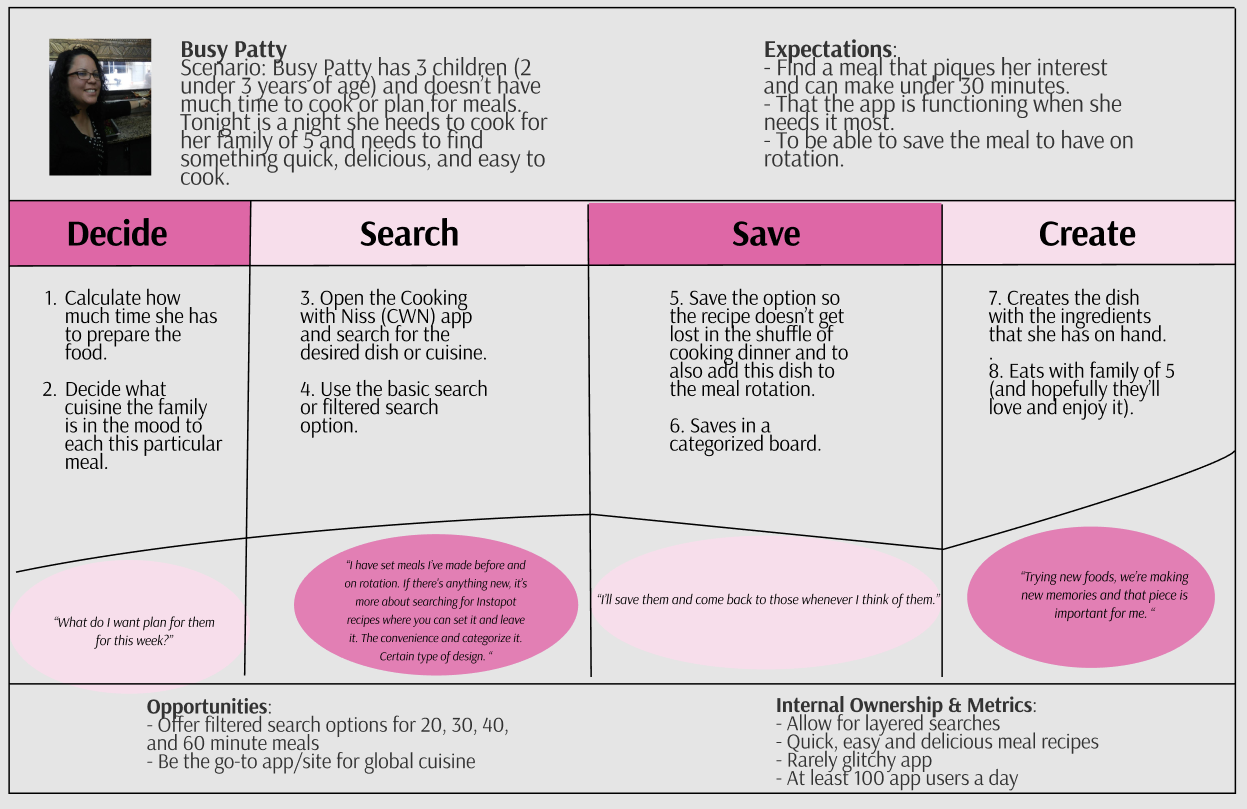 I mapped out the journey that prospective users would go through on the Cooking with Niss app.